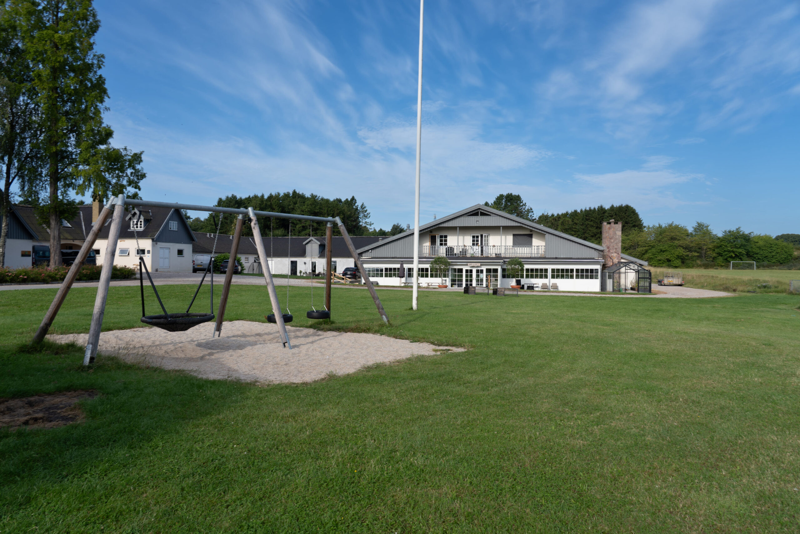 Vi har en bålhytte, som skal danne rammen om div. natur/udendørsaktiviteter. Vi har også shelter med bålplads, fodboldbane, egen sø og en trampesti hele vejen rundt om grunden.