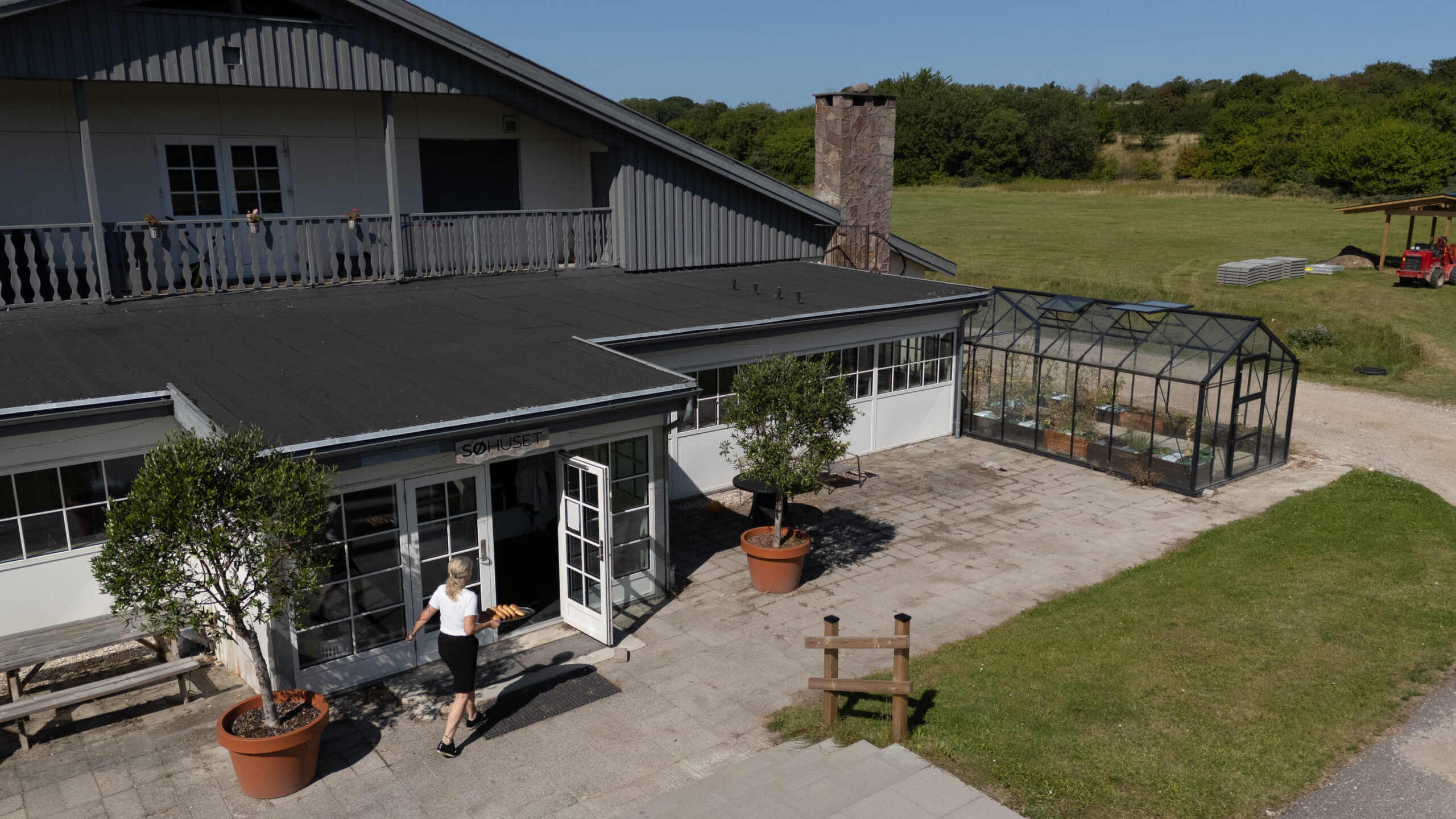 Vi har også et mindre dyrehold med geder, kælegrise og høns.