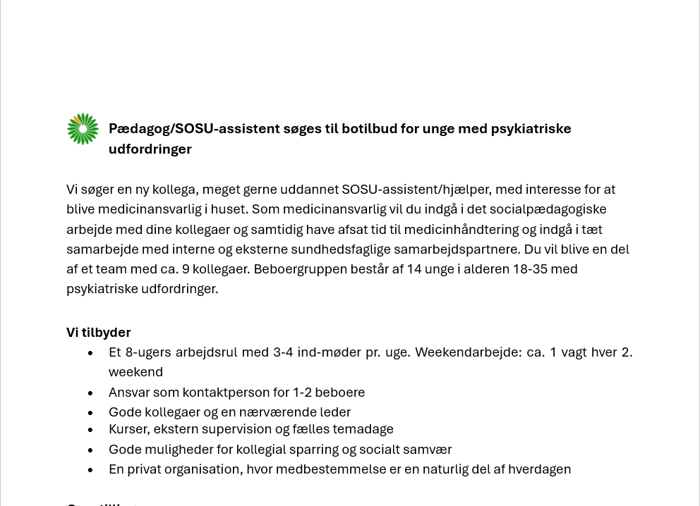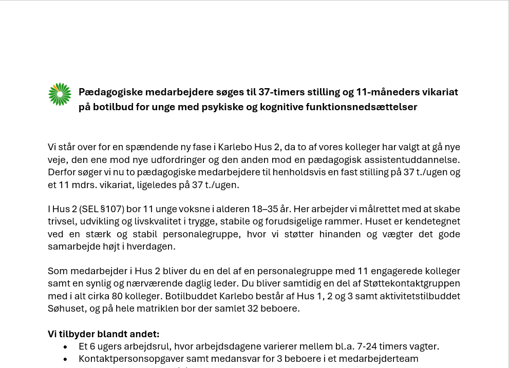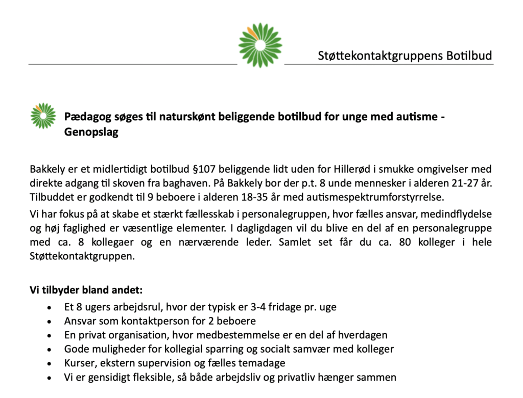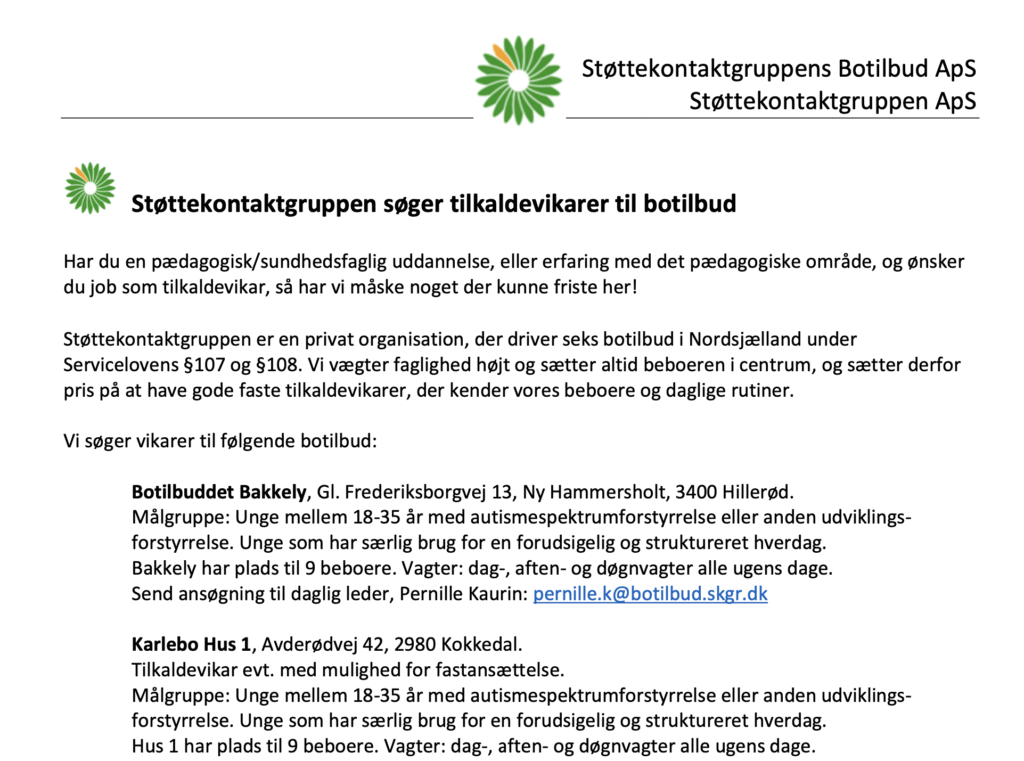 Da vi ofte har brug for kvalificerede kolleger til vores mange forskelligartede opgaver, kan vi kun opfordre dig til at søge job i Støttekontaktgruppen.